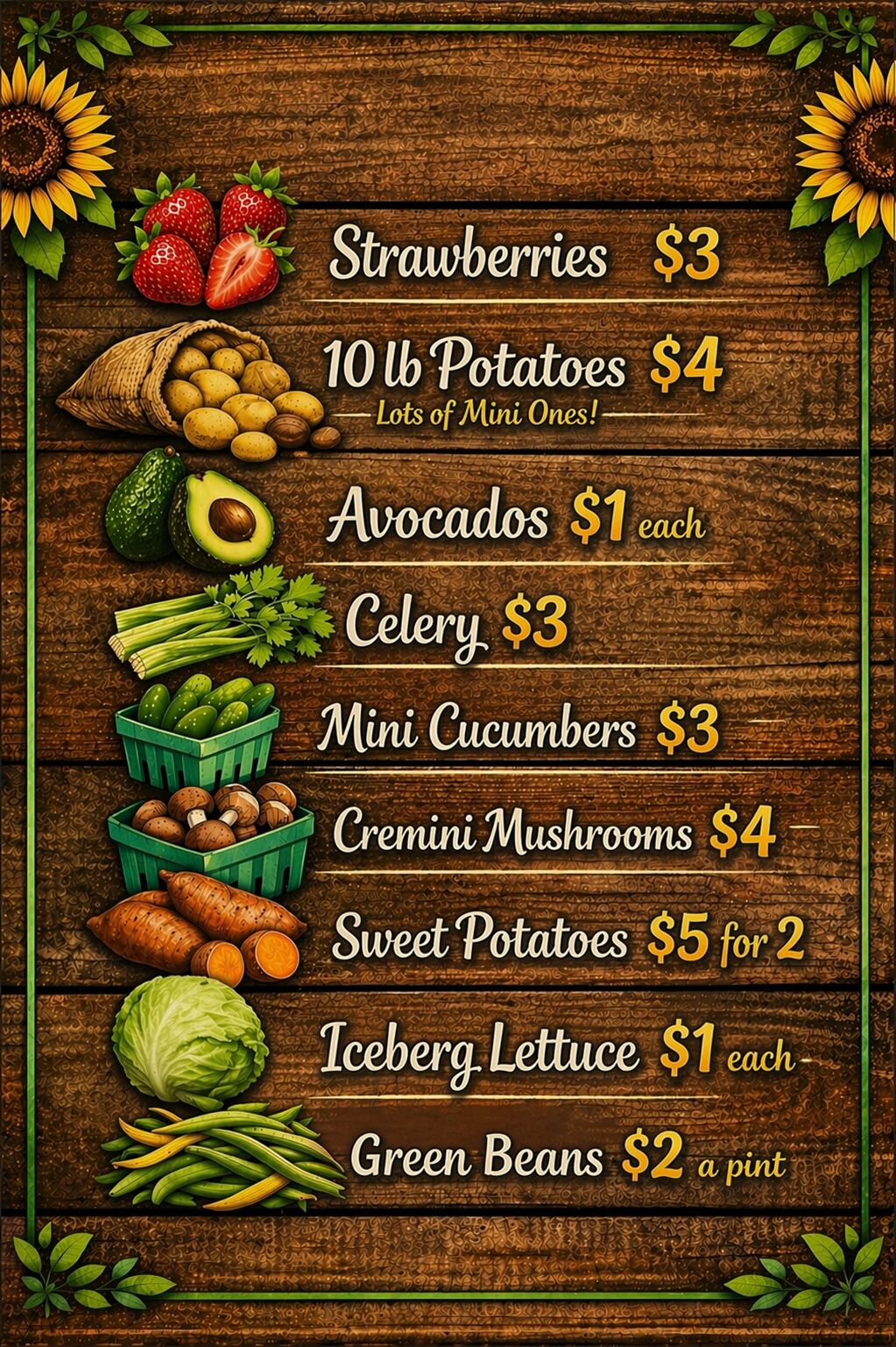- Some produce may be “seconds” (cosmetic imperfections, same great quality)